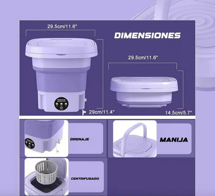 Diseño plegable: esta lavadora es plegable y puedes llevarla fácilmente contigo, adecuada tanto para uso doméstico como de viaje. El diseño plegable tipo cubo para un fácil almacenamiento cuando no esté en uso.