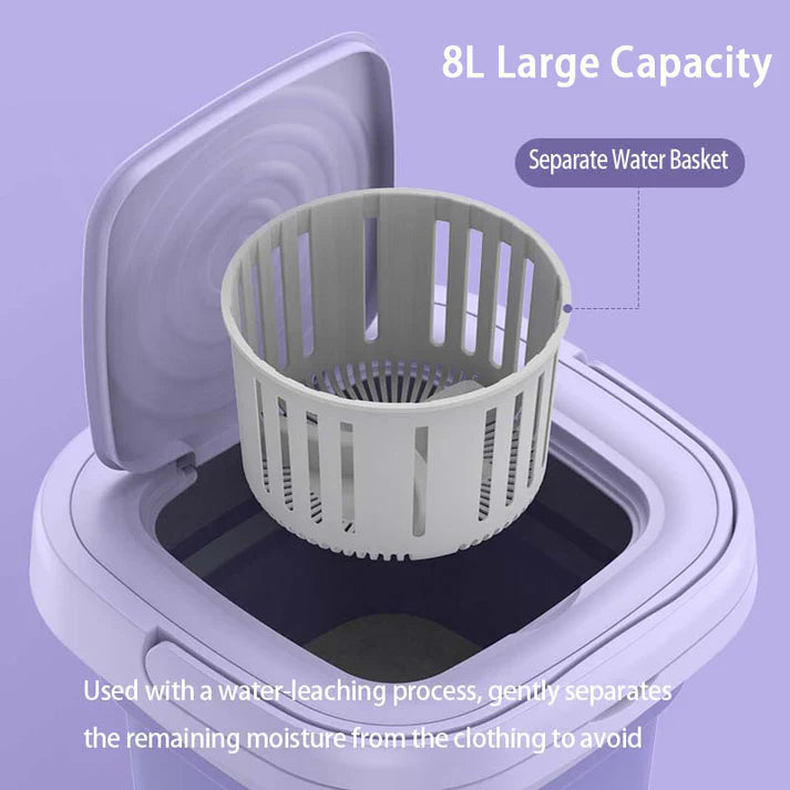Lavadora portátil: esta lavadora es portátil y compacta, lo que es muy adecuado para lavar ropa de niños, ropa interior, calcetines, toallas, etc. Elimina eficazmente la suciedad y hace que tu ropa esté limpia.