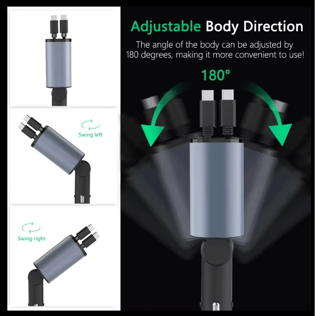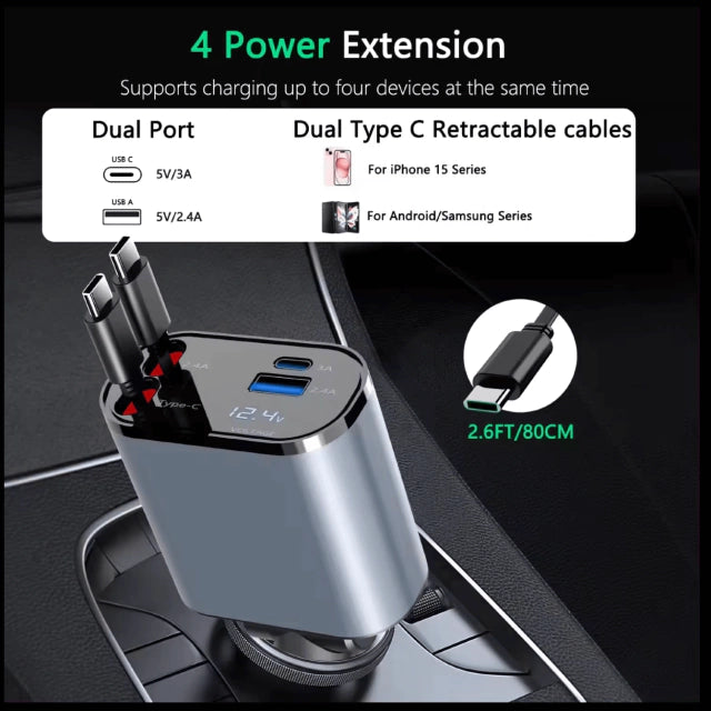 Conoce nuestro"Super ⚡ Cargador Retráctil 4 en 1"Cargarás tu celular súper rápido mientras manejas.